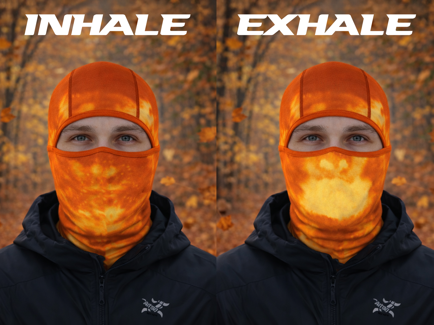 Wärmereaktive Fasern, die sich durch Atem und Körperwärme aktivieren und einen dynamischen Farbwechsel offenbaren.